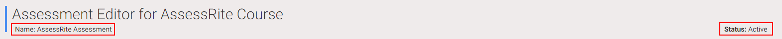 You can see the status of the assessment in the top right corner of the screen, Active or Inactive. If the status is Active, users can see and complete the assessment. If it is Inactive, it is hidden from end users. You may want to keep your assessment hidden while you create and edit it.