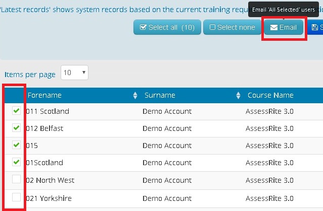 Any users that either have never completed the course or are overdue can then be emailed with a new training notification from this report.