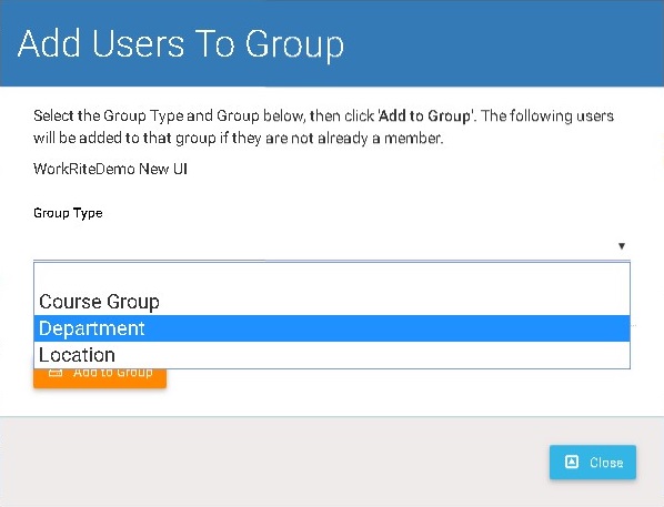 You can then choose the group type the users need to be be bulk added to from here. You can then press 'add to group'.