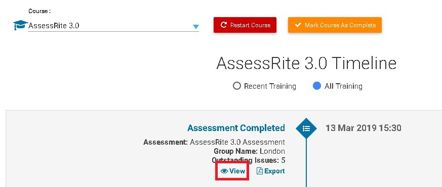 If you have more than one course on your system, you will need to go to the 'Summary Status' page and then the 'All Courses' drop down to select the assessment that has the issues you need to close off.