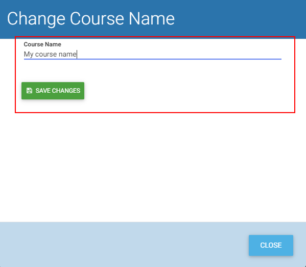 3. In the next dialogue box, enter the new course name and select SAVE CHANGES.