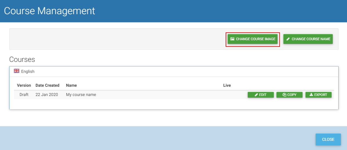From the list of your available courses to edit, you can amend both the course name and the course image