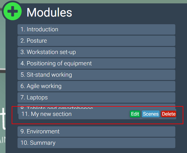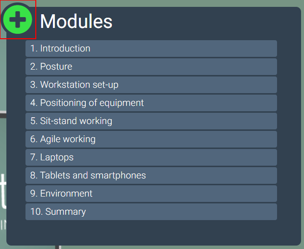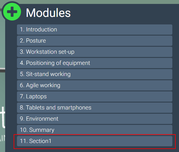 1. Select the green plus button next to Modules in the top right-hand corner of your course.