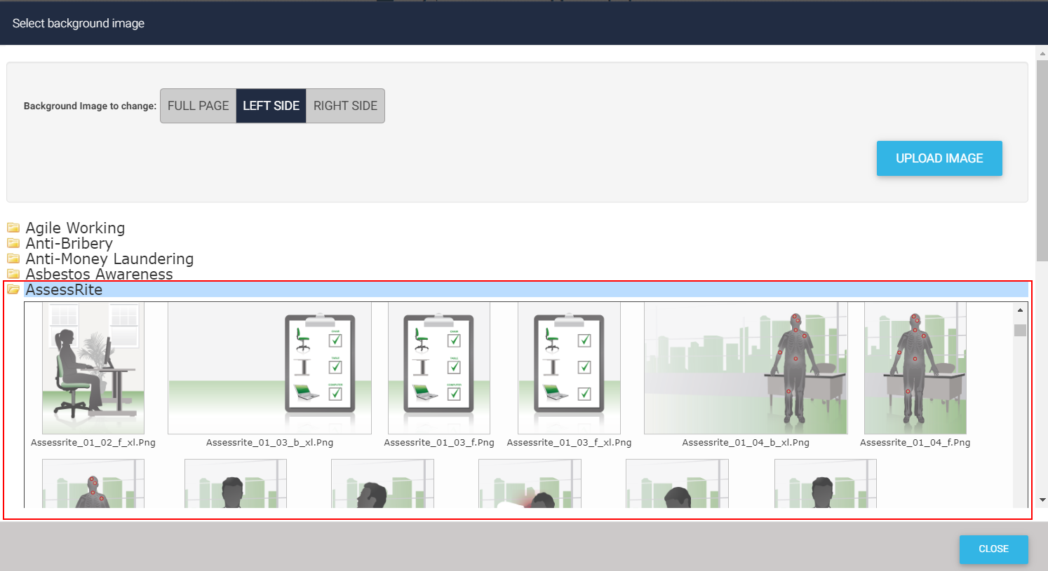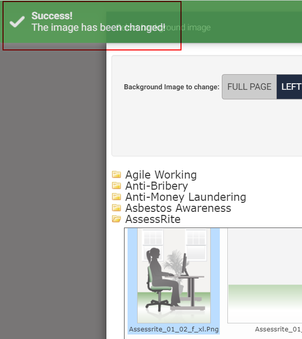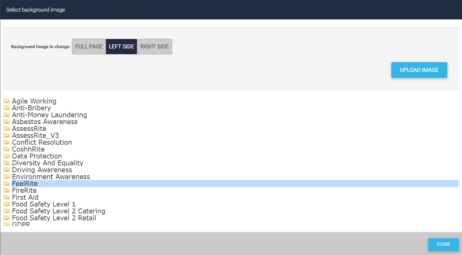 2. Choose which background image to change (left, right or full) before uploading a new or selecting an existing image.