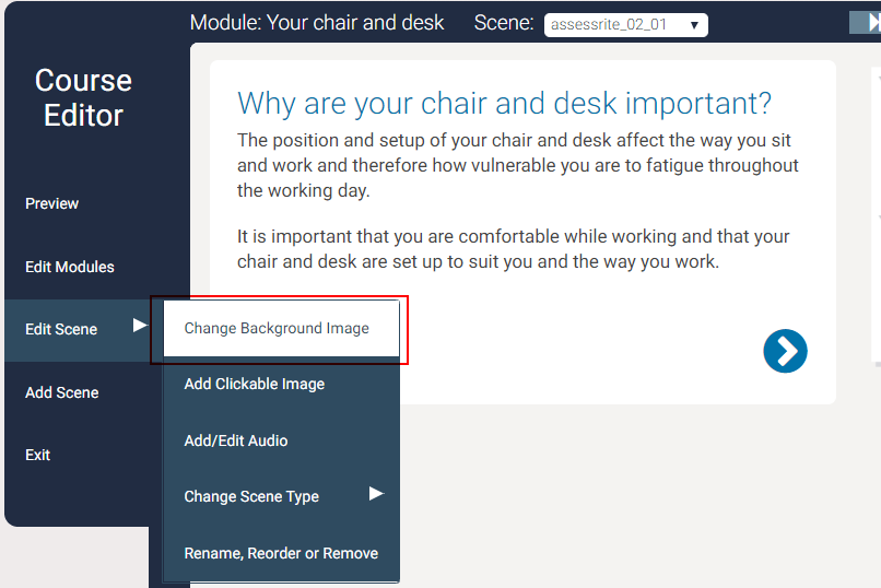 1. Hover over Edit Scene in the navigation column on the left hand side and select Change Background Image.