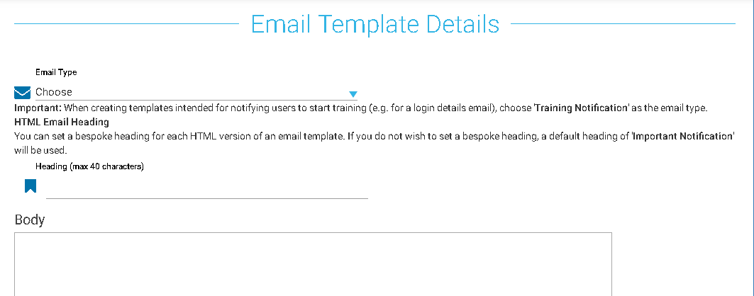 • Training Notification – To notify users to start training, contains login details and will be able to