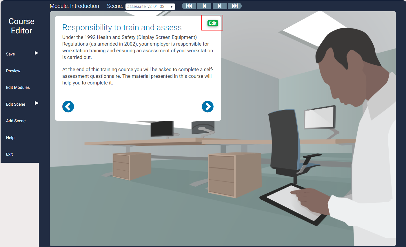 The Edit Scene Title & Instructions pop-up is displayed.