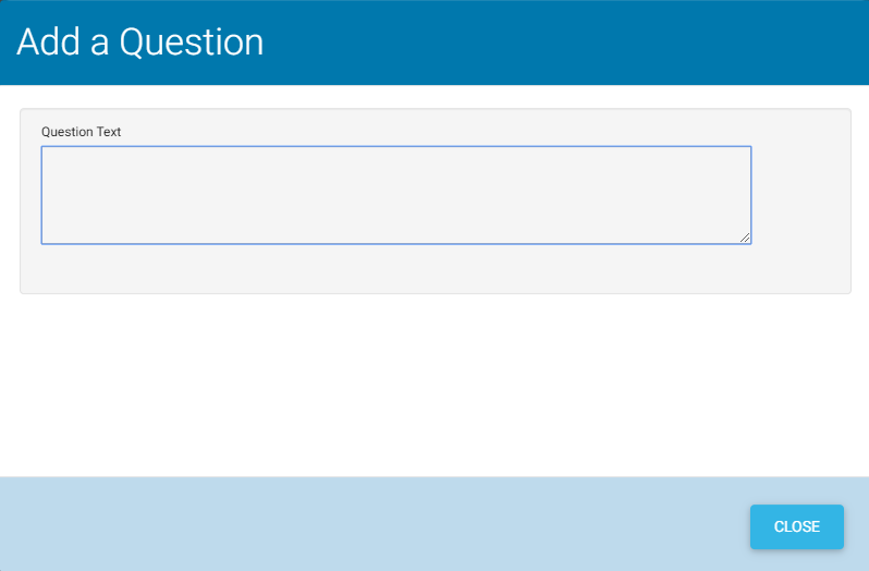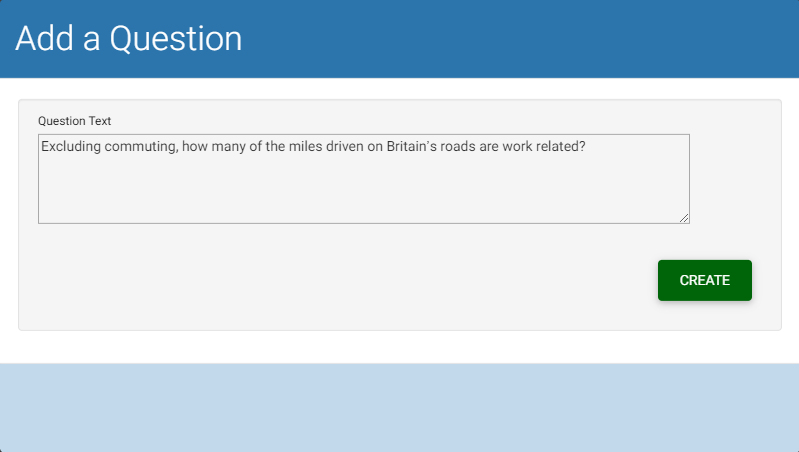 2. Enter your question in the Question Text box. When you start typing, a Create button is displayed. When you have finished entering the question, select the Create button.