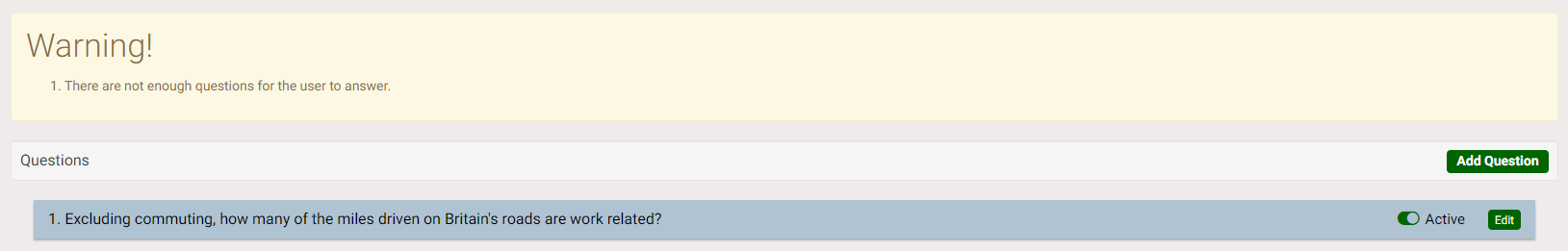 Your question is displayed in the main Test Editor screen. A message is also displayed, informing you that you have not created the specified number of questions.