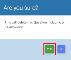 4. Select Yes to delete the question and all it's answers.